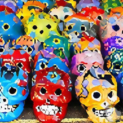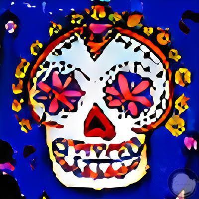 The colors of the calavera are strongly reminiscent of the vivid ones used in the tradition for this festivity, while the shapes of the skull are more intuitive to the human eye. Some of the pieces contrast a dark background and jumps of light that follow one another on the skull. They are images that remind us of the inevitability of death. At the same time, the fact that the images remain only partially defined, opens the door to an intimate reflection on existence, and on possibilities not yet experienced. Artificial Intelligence pays its respect to death and celebrates life in respect of the spirit of the Día de los Muertos.